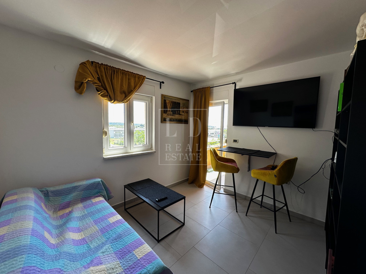 A one-room apartment with a sea view is for sale.